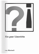 | MarionG Re: ... - Zitat: (Original von Rajymbek am 10.03.2010 - 18:03 Uhr) Uns Marion schrieb Limerick, Die reimten alle sich sehr schick, Mir konnten sie lesen, Das wars schon gewesen, Da wurden wir vom Lesen dick. grins LG Roland Lieber Roland, hab Dank für Deinen fünfzeiligen gereimten Kommentar. Liebe Grüße Marion |