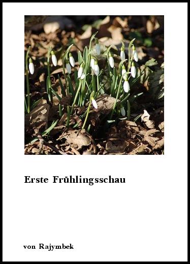 | Rajymbek Re: - Zitat: (Original von mukk am 06.03.2011 - 11:45 Uhr) ja,die zarten kleinen Glöckchen sind eine der ersten und erfreuen uns ganz besonders. Habe sie vor einigen Tagen auch fotografiert, Auch ein Entenpaar - sie haben mir aber ihre Namen nicht zugeflüstert, schade... mit lieben Frühlingsgrüßen aus dem kalten Wien! ingrid Noch ist es kühl, doch spürt man leise des Frühlings Flüstern ringumher... VLG Roland |