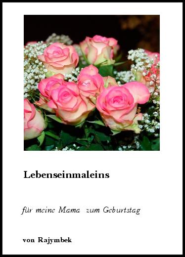 | Rajymbek Re: ***** - Zitat: (Original von erato am 16.06.2013 - 13:33 Uhr) Du bist halt doch ein guter Sohn.... - .... habe ich auch nicht anders erwartet, mein Bruder. GghG Thomas Ach Thomas, manchmal staune ich über mich selbst,. dass mir in jedem Jahr neue Gedanken kommen. Das muss an der Liebe liegen, denn wer liebt, sieht die Welt einfach bunter. Brüderliche Entspannungsgrüße vom Roland |